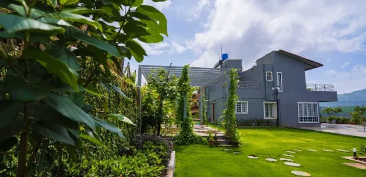 In this section, witness the architectural beauty of the villa set against the lush greenery of Mulshi.